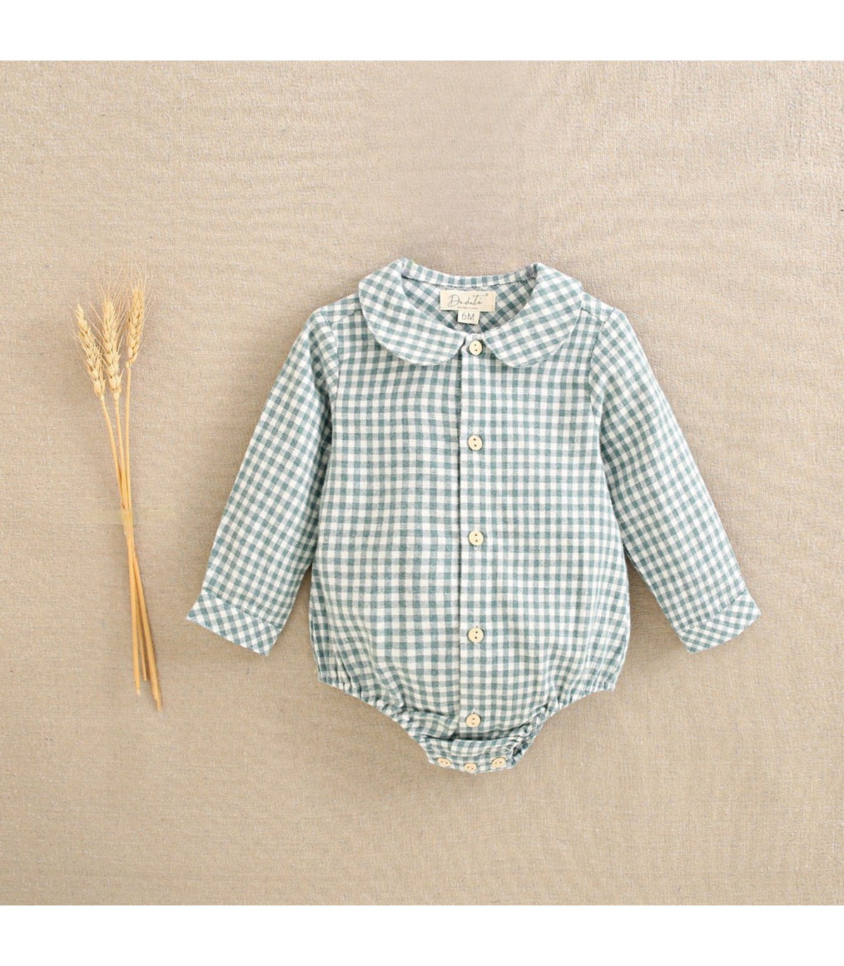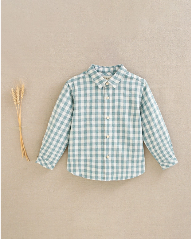 Camisa manga larga de franela para niño en cuadros vichy verde agua
