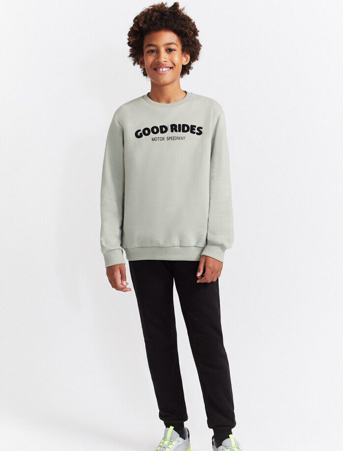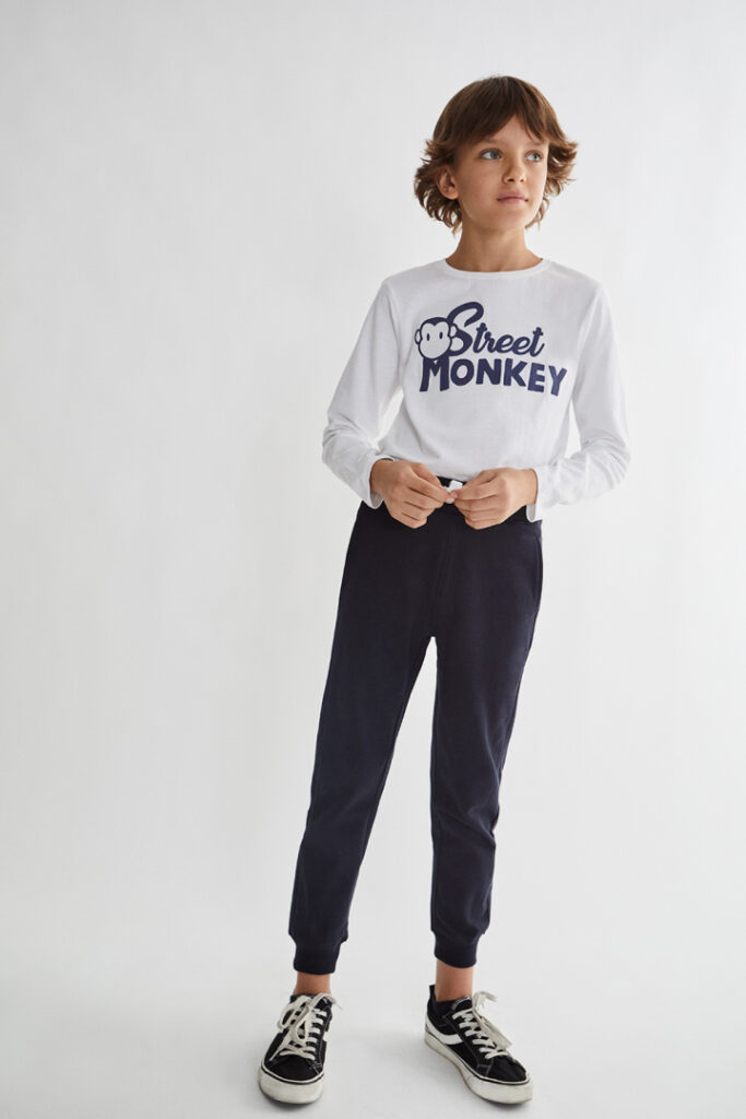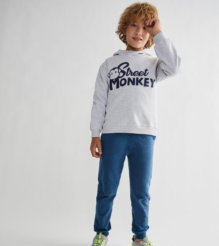 Pantalón felpa perchada con cinturilla elástica y cordones ajustables frontal, bolsillos delanteros y bajo acabado en puño