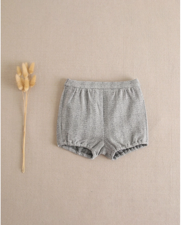 Short de bebé niño gris con estampado de espiga tipo ranita