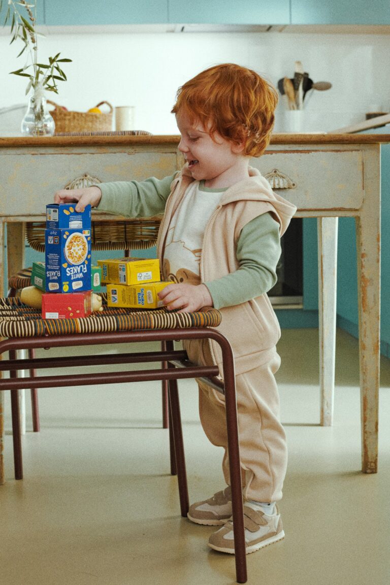 Conjunto infantil niño sudadera mostaza y pantalón azul marino