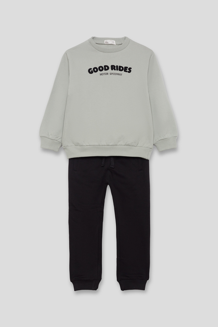 Conjunto sudadera gris y pantalón estampado