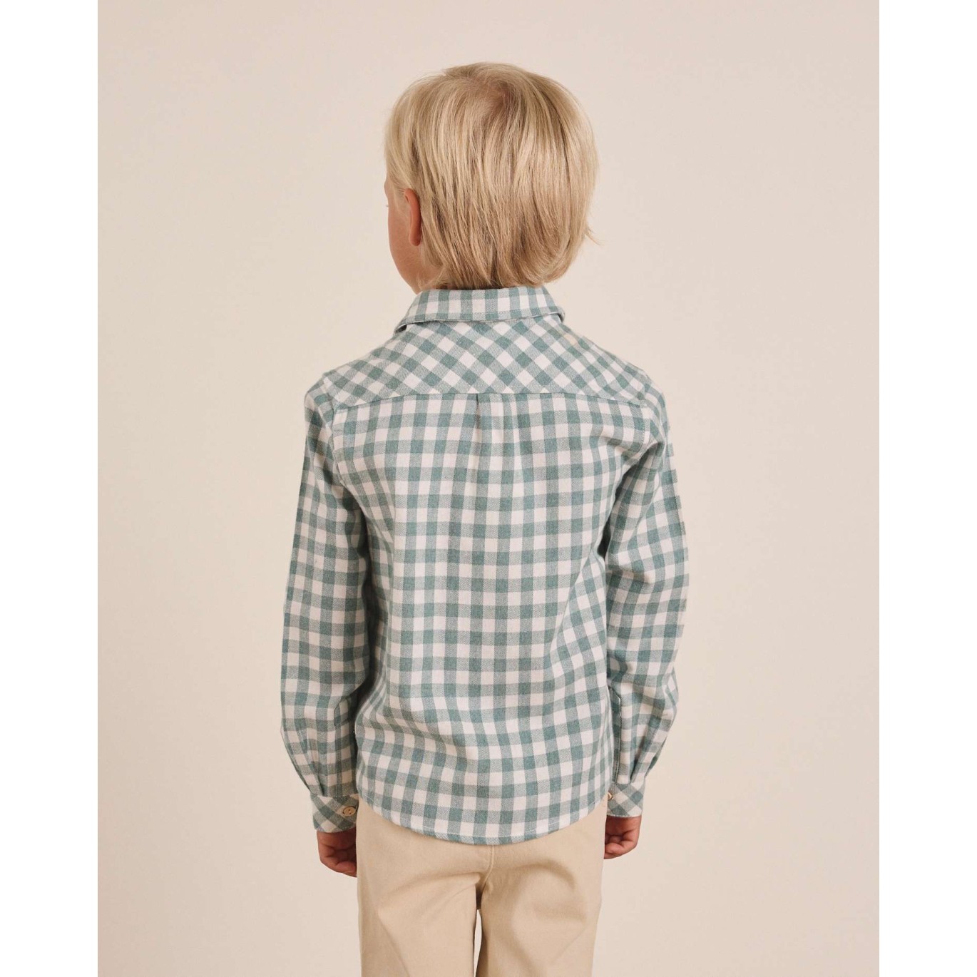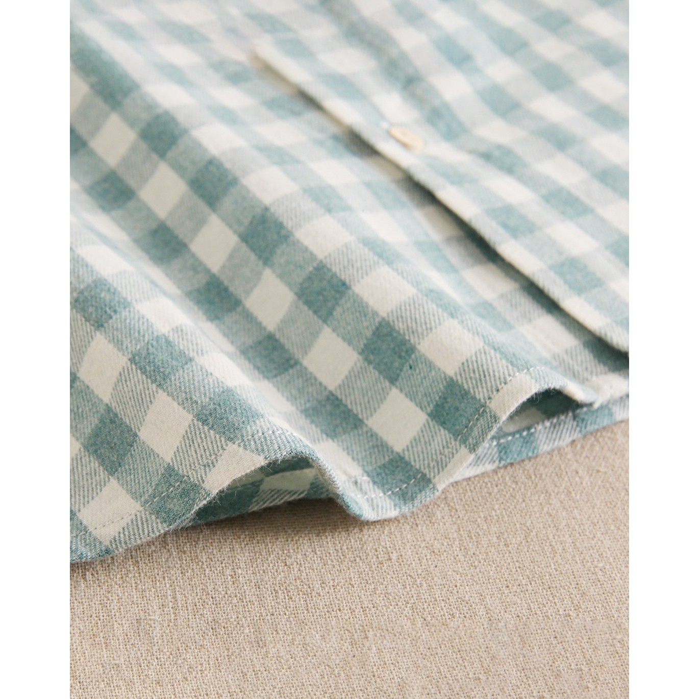 Camisa manga larga de franela para niño en cuadros vichy verde agua