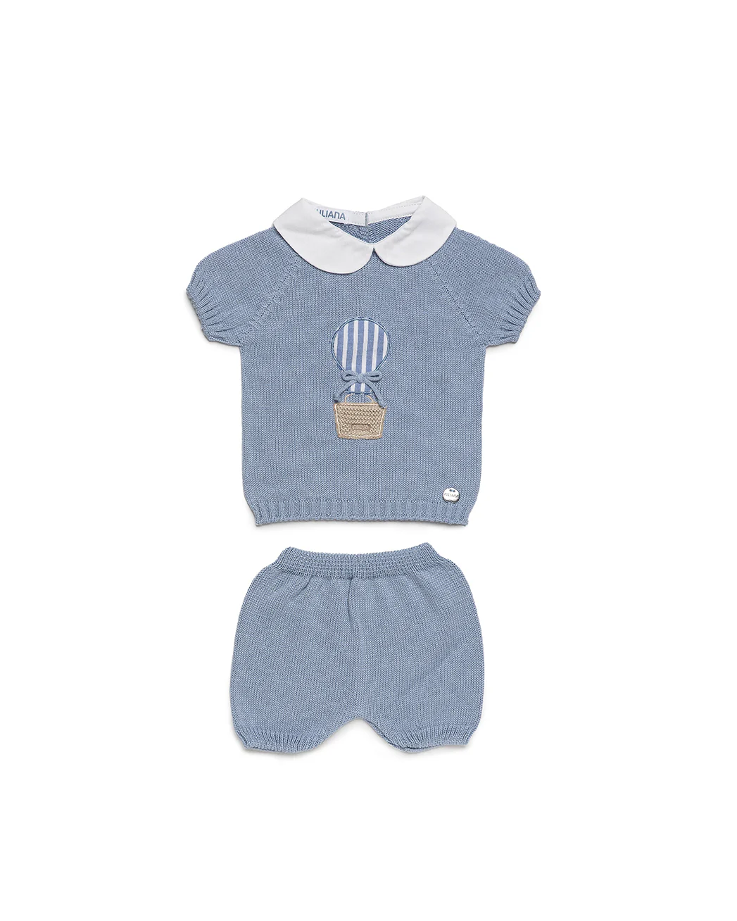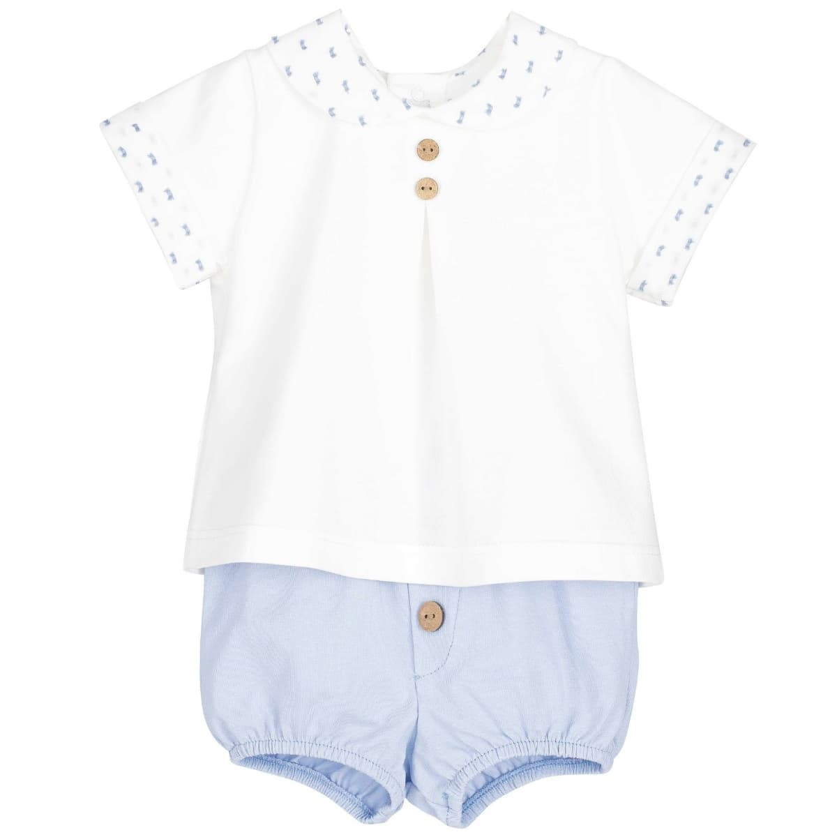 Conjunto de bebé jersey cuello volante y pantalón bolsillos volante