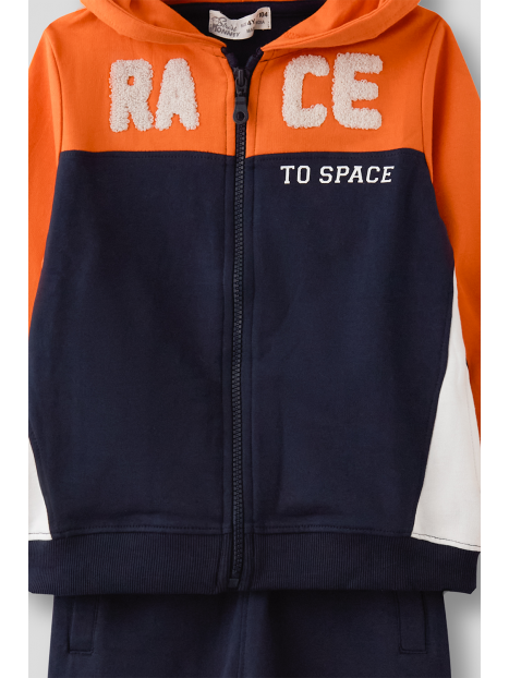 Conjunto sudadera con capucha naranja y marino, pantalón marino