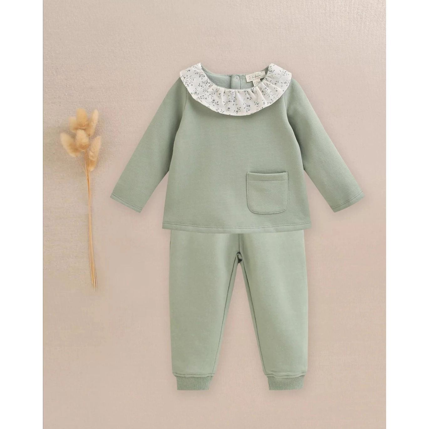 Conjunto de bebé jersey cuello volante y pantalón bolsillos volante